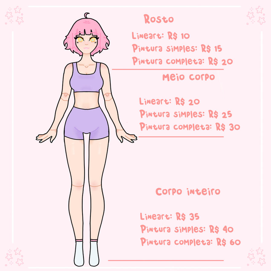 ✎O pagamento deve ser feito pela metade antes do desenho ser iniciado, e os outros 50% quando finalizado, ambos via Pix;✎Não aceito pagamentos feitos em criptomoedas, trocas de produtos, NFT ou IA;✎Caso o valor seja muito alto, o parcelamento será negociado;✎Se houver desistência por qualquer parte durante o processo, o pagamento será reembolsado;✎Não haverá reembolso ou descontos assim que o desenho for 100% finalizado e enviado;✎Caso o cliente se recuse a pagar a parte que falta após a finalização, irei recorrer à meios legais da Justiça.